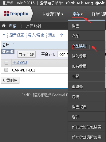 3.要推送去万邑通的产品, 必须做万邑通的产品映射【产品】->【产品映射】,此处不做详细介绍。