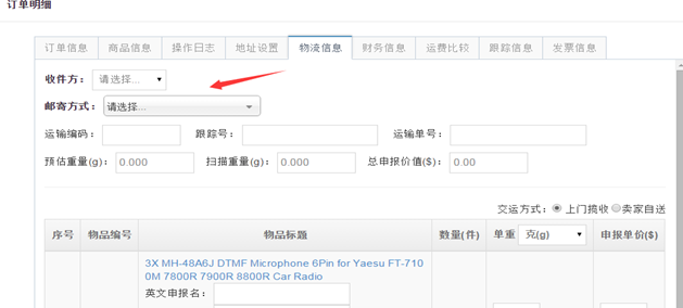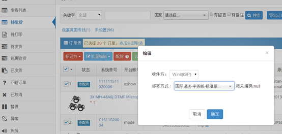 2.获取订单上传到ISP物流平台先修改邮寄方式=》批量编辑邮寄方式