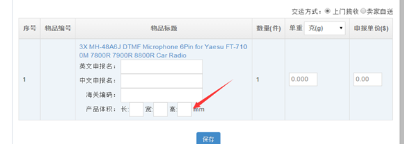 3.体积一定要填写长度范围应为13.99-60.01;宽度范围应为8.99-60.01;高度大于0