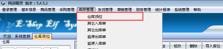 ③:打开软件库存管理菜单下面的仓库货位