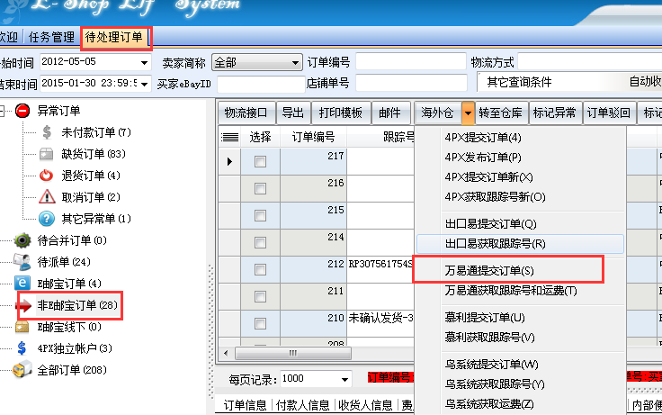 订单经过派单后会自动跳转到非E邮宝订单,如图所示: