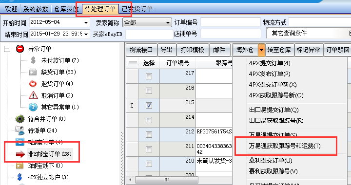 2,使用万邑通海外仓接口提交订单返回跟踪号