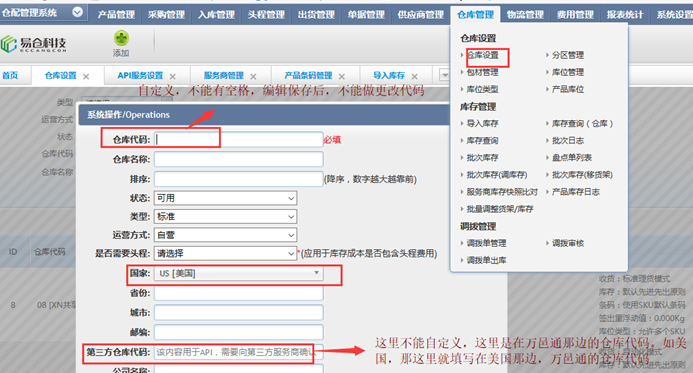 ①仓库,带星号处必填