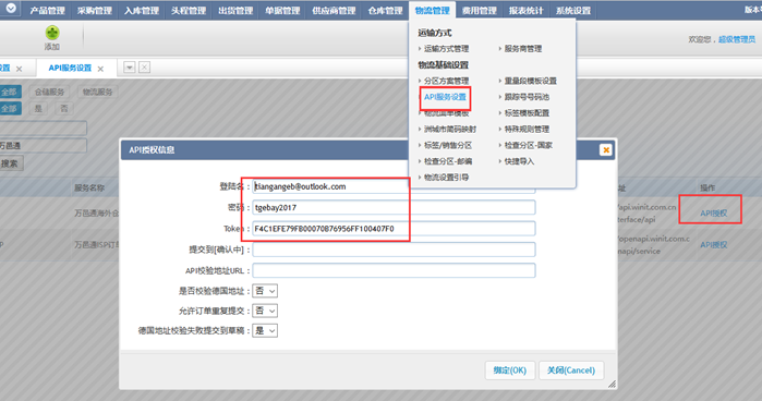 5.API校验地址URL:填写https://openapi.winit.com.cn/openapi/service