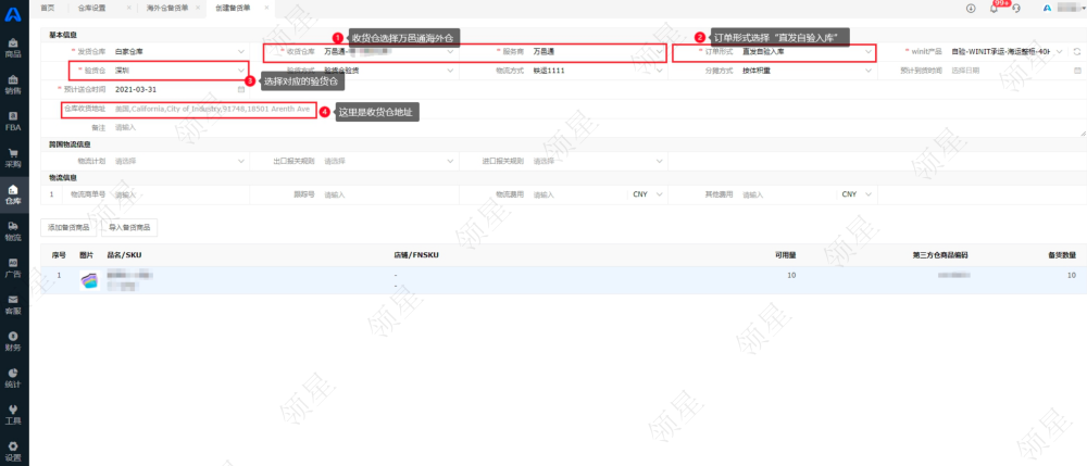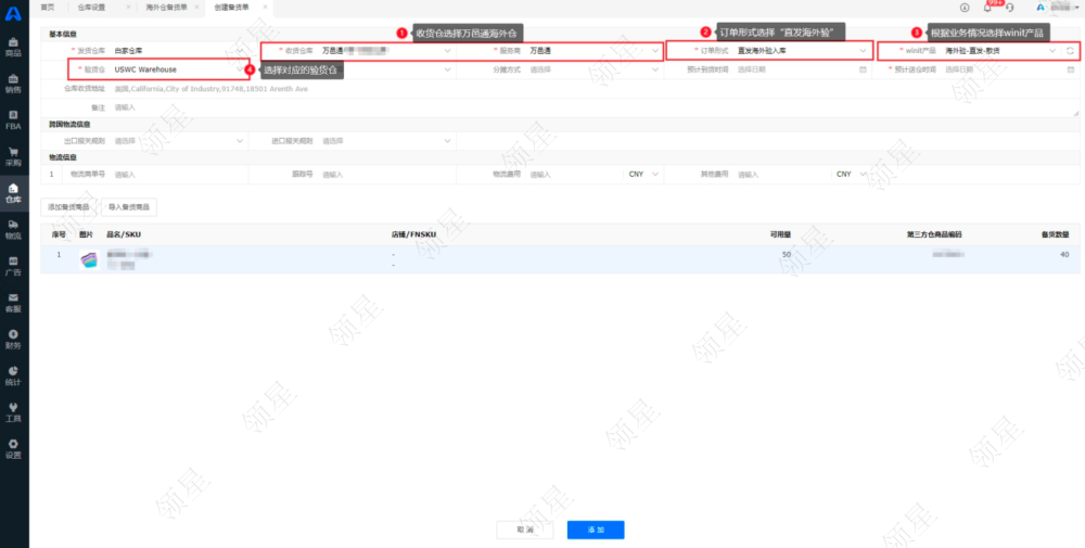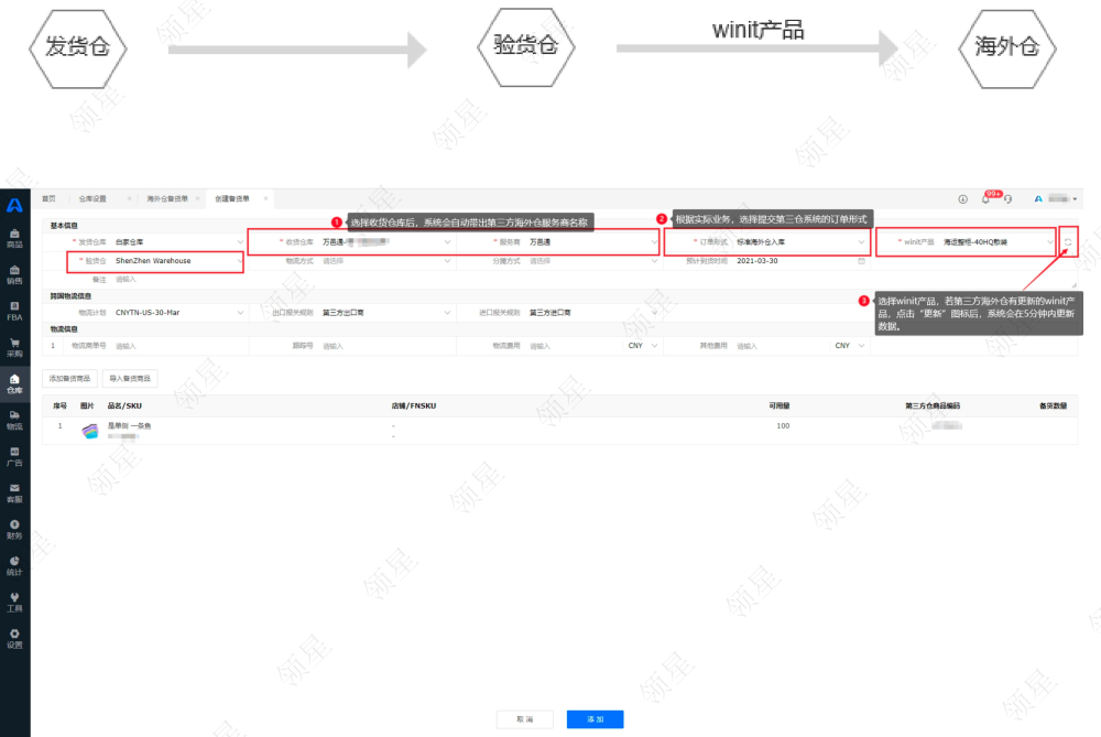 对成功后,创建海外仓备货单时,才可选择对应的第三方海外仓的商品。