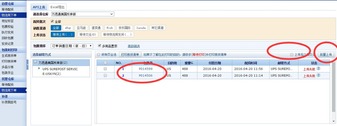 a.查询确认承运商名称(ebay Carrier)和上传的什么样的跟踪号(order no或tracking no)