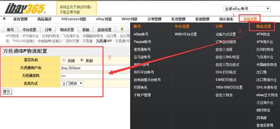 1.在【系统设置】->【物流设置】->【万邑通ISP】填写相关信息