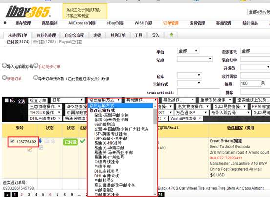 在去【订单管理】找到要分配该物流的订单勾选修修改运输方式为原先设置的那个中文名。