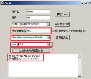3:选择发货方式,填入提货地址编号,点击 生成物流方式配置参数