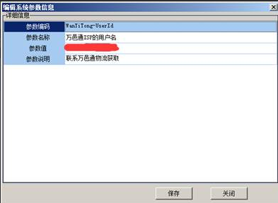 在参数值中分别输入对应的浩远物流 WanYiTong-UserID和WanYiTong-Password;点击保存,配置完成。