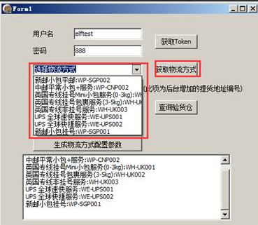 1:点击获取物流方式,在下拉列表可以显示所有的物流方式。