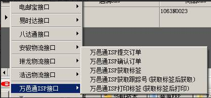 中的物流接口这个按钮,会弹出一个菜单,如下图所示