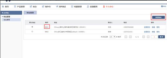 3.在这个里面可以新增地址,新增后的编号,就是提货地址编号。