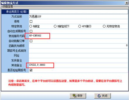 物流方式代码,填入新增物理方式的物流方式代码,其他备注,填入新增物流方式的其他备注。