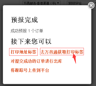获取跟踪号之后,您可以选择在系统中打印地址标签,并将跟踪号上传到平台。