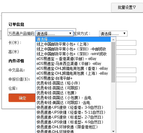 【万邑通产吕品码】:指ISP万邑邮选择的物流渠道