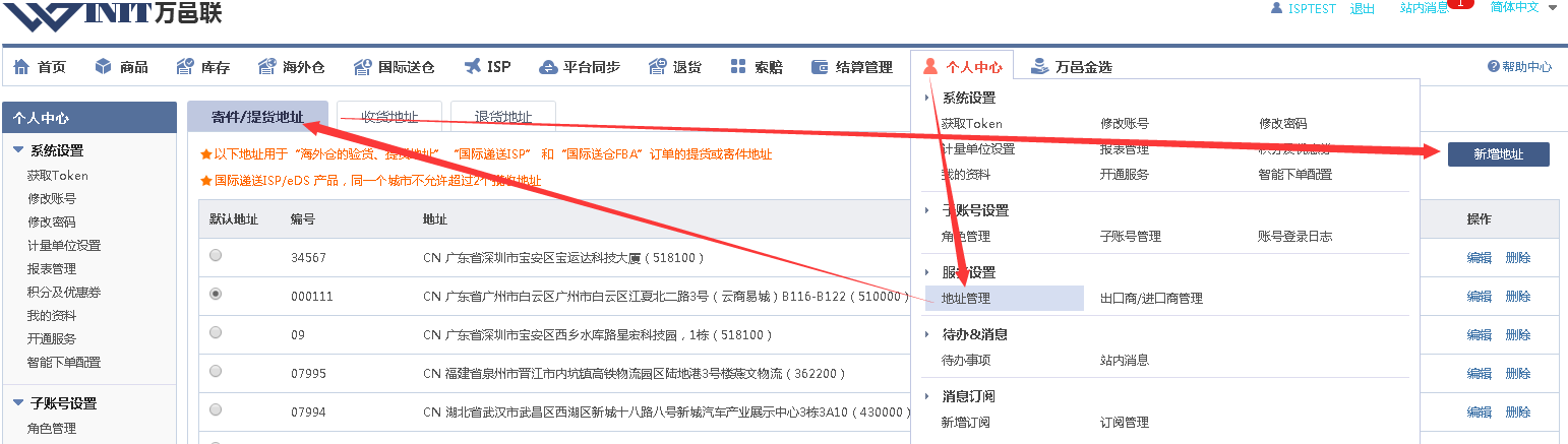 一、使用ISP直发快递的前置准备——创建【寄件人/发货地址】