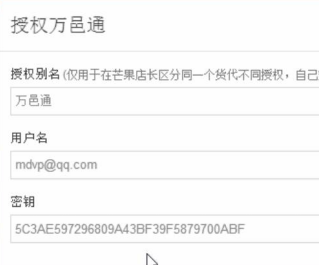 3.万邑通授权,填写【万邑联帐户】和【密钥】点击【确认】